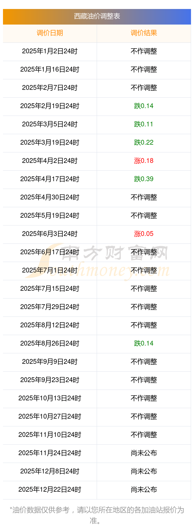 西藏拉薩2025年油價(jià)調(diào)整時(shí)間及最新價(jià)格表