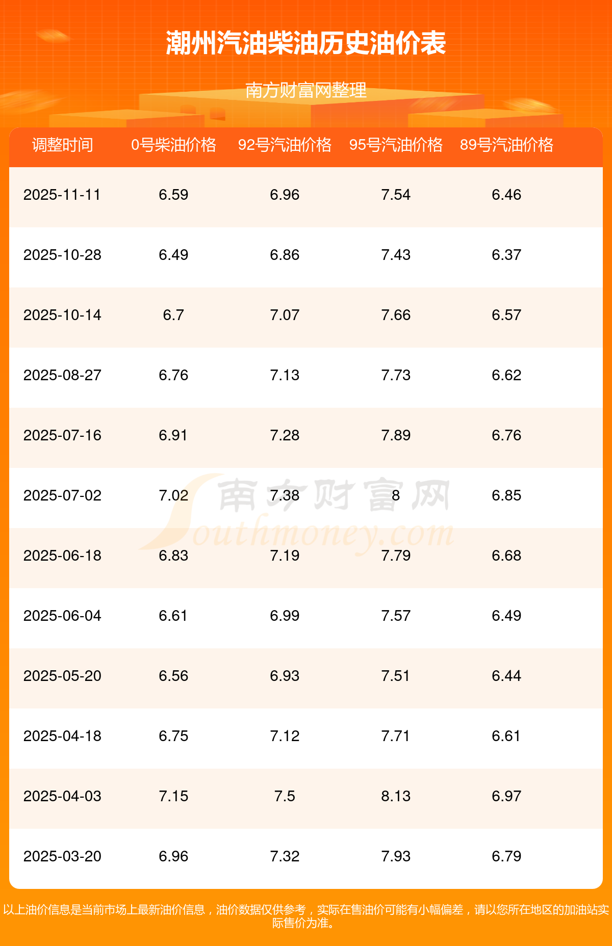 2025年汽油柴油歷史油價調(diào)整一覽表