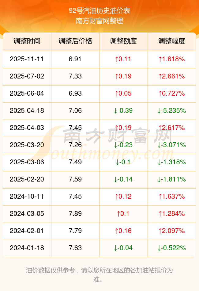 汽油柴油11月12日的價格每升多少錢?具體為:92號汽油為6.91元,升了0.11元;95號汽油為7.45元,升了0.11元;0號柴油為6.5元,升了0.1元,本輪油價的調(diào)整時間為11月11日。下一輪油價調(diào)整時間11月24日24時,距離現(xiàn)在還有12.43天。