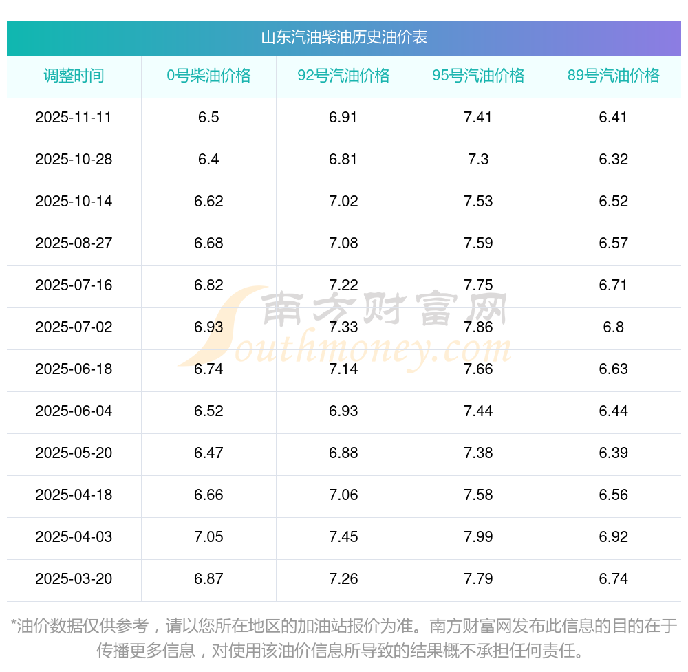 (11月12日)92、95號(hào)汽油價(jià)格一覽表