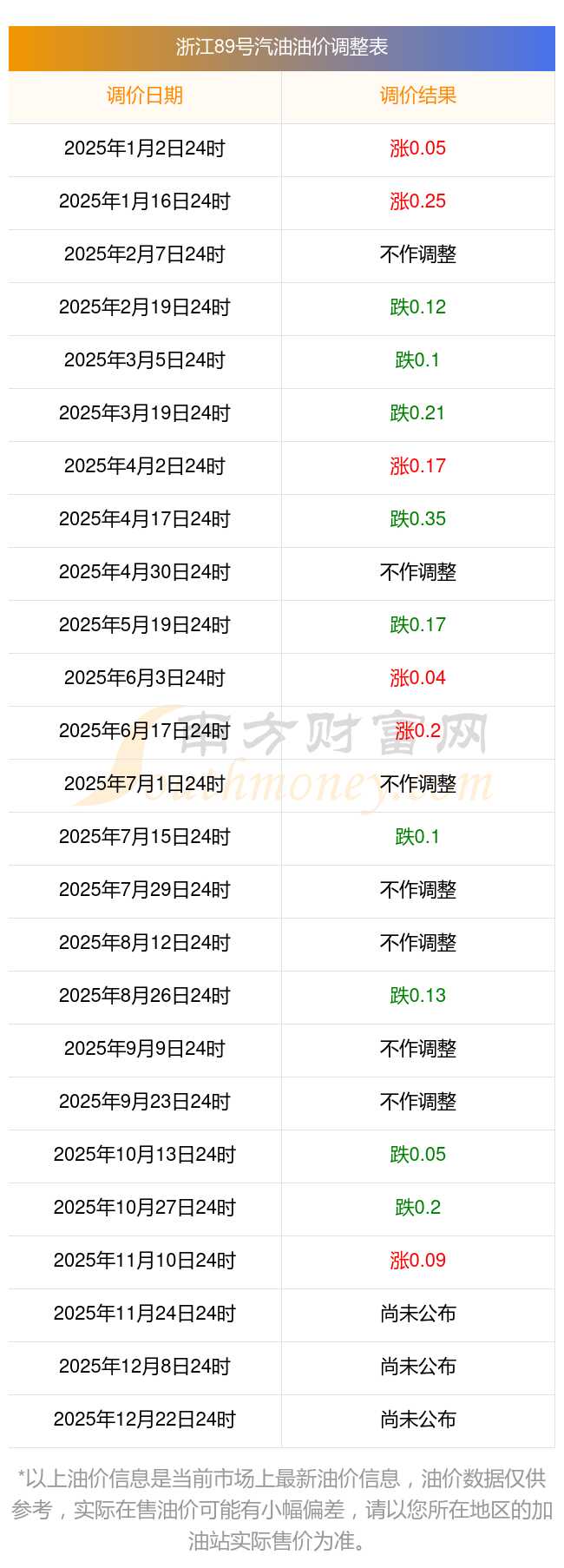 2025年油價(jià)調(diào)整時(shí)間及價(jià)格一覽表
