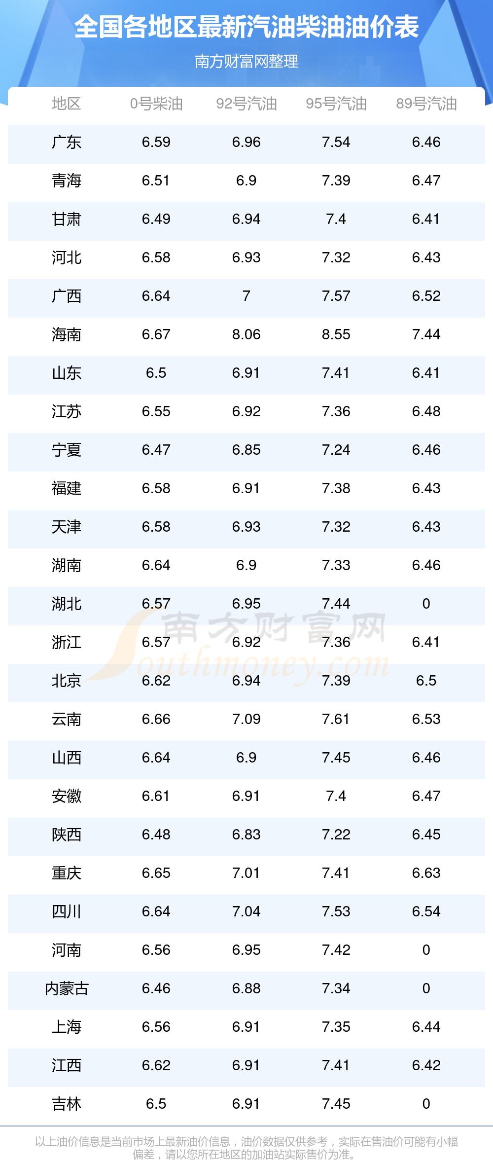 2025年11月12日全國(guó)各地汽油價(jià)格一覽表
