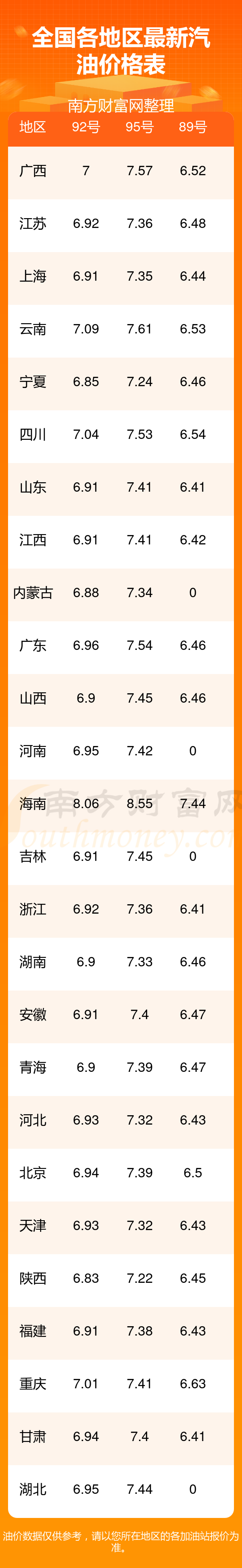 11月12日全國各地區(qū)汽油今日油價(jià)格?