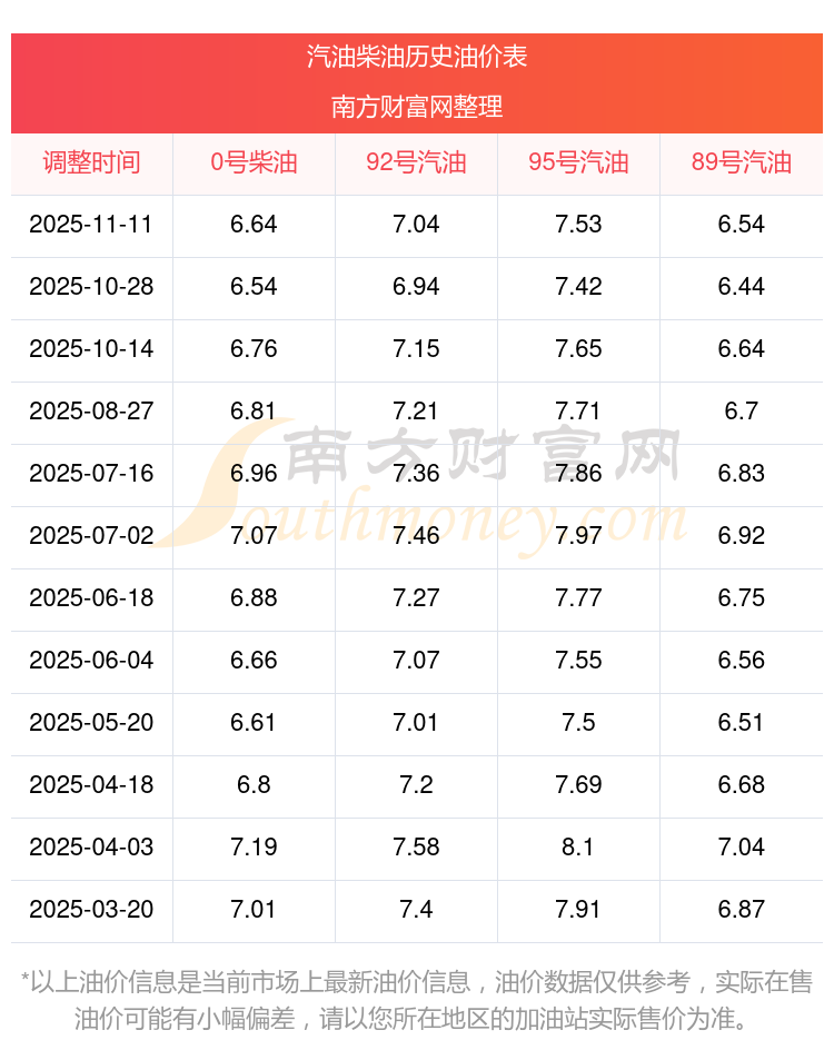 2025年92號汽油價格一覽表