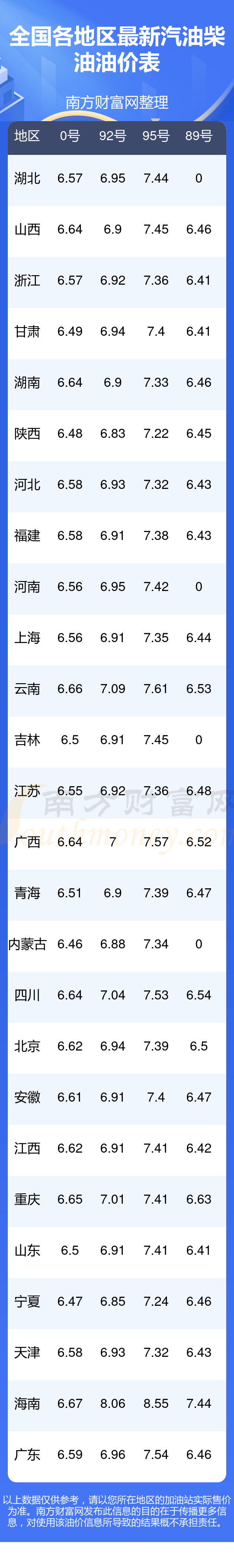 2025年11月12日全國各地油價調(diào)整時間表