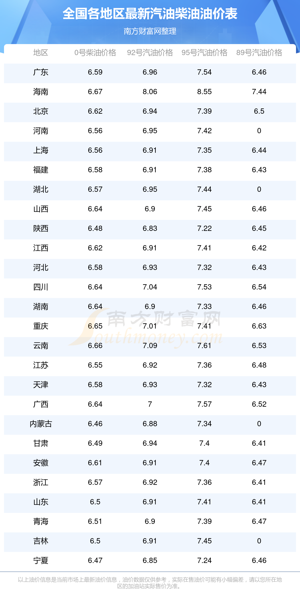 2025年11月12日全國各地油價調整及最新汽油價格表