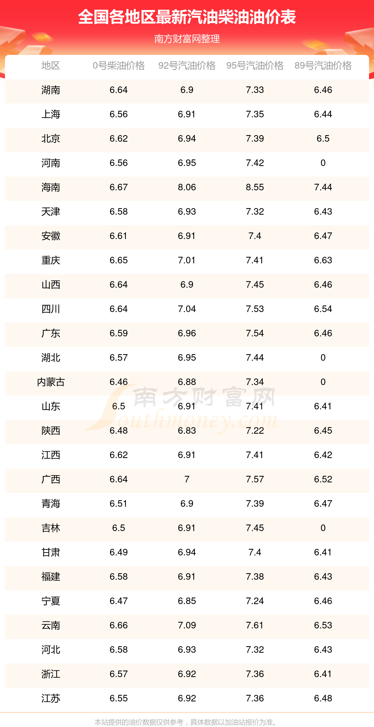 油價數(shù)據(jù)僅供參考,請以您所在地區(qū)的各加油站報價為準。