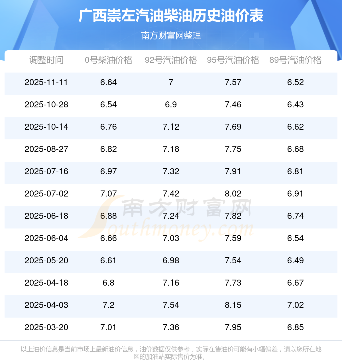 2025年汽油柴油歷史油價(jià)調(diào)整一覽表