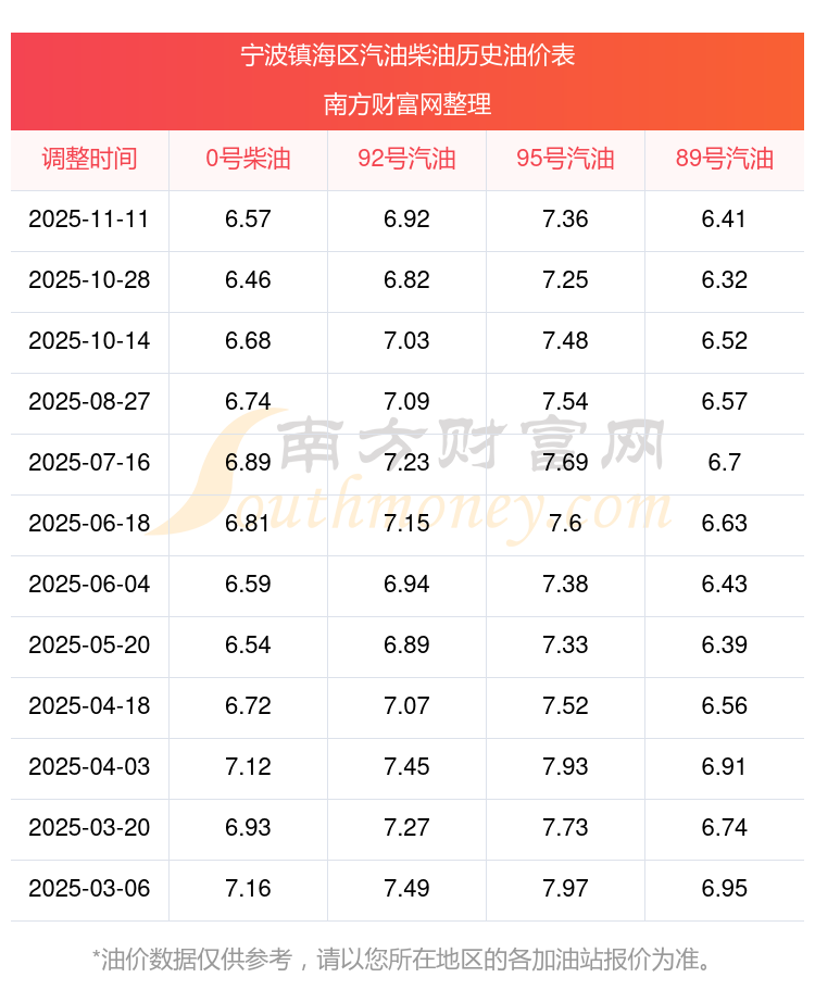寧波鎮(zhèn)海區(qū)歷史油價(jià)表