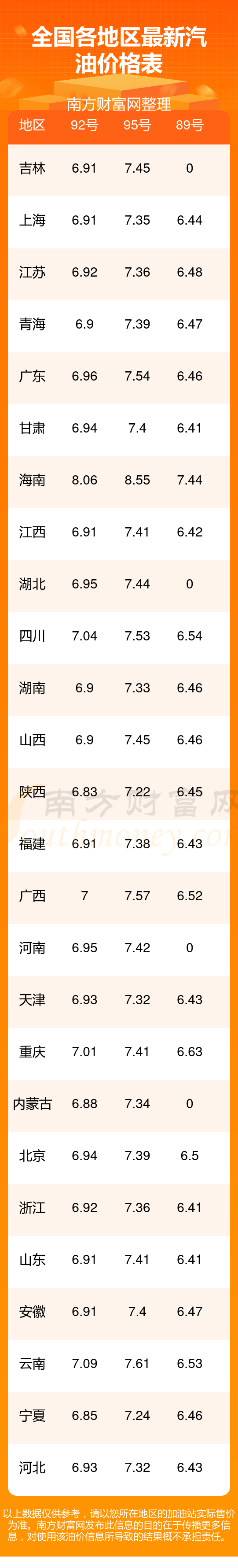 2025年11月12日全國油價調(diào)整及最新汽油價格表