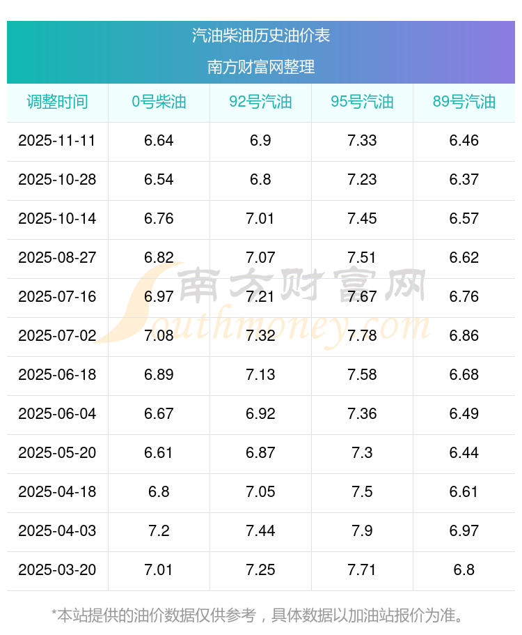 11月12日湖南湘西95號(hào)汽油的價(jià)格為11月11日油價(jià)調(diào)整后的價(jià)格,每升7.33元,對(duì)比上一輪油價(jià)調(diào)整時(shí)間10月28日的價(jià)格7.23元每升,上漲了0.11元,上漲幅達(dá)1.462%。下一輪油價(jià)調(diào)整時(shí)間11月24日24時(shí),距離現(xiàn)在還有12.36天。