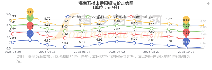 海南五指山番陽(yáng)鎮(zhèn)歷史油價(jià)走勢(shì)圖
