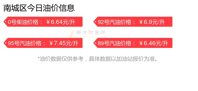 南城區(qū)汽油、柴油11月12日每升的價格為11月11日調(diào)整后的價格:92號汽油6.9元;95號汽油7.45元;89號汽油6.46元;0號柴油6.64元。