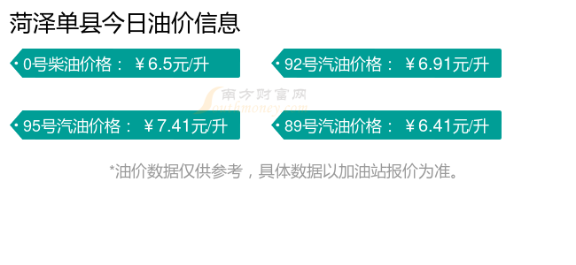 菏澤單縣汽油、柴油11月12日每升最新價(jià)格:92號汽油為6.91元;95號汽油為7.41元;89號汽油為6.41元;0號柴油為6.5元,本輪油價(jià)調(diào)整時(shí)間為11月11日。