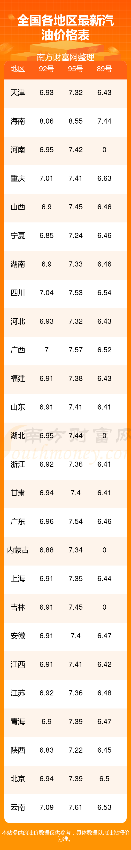 油價數(shù)據(jù)僅供參考,請以您所在地區(qū)的各加油站報價為準。