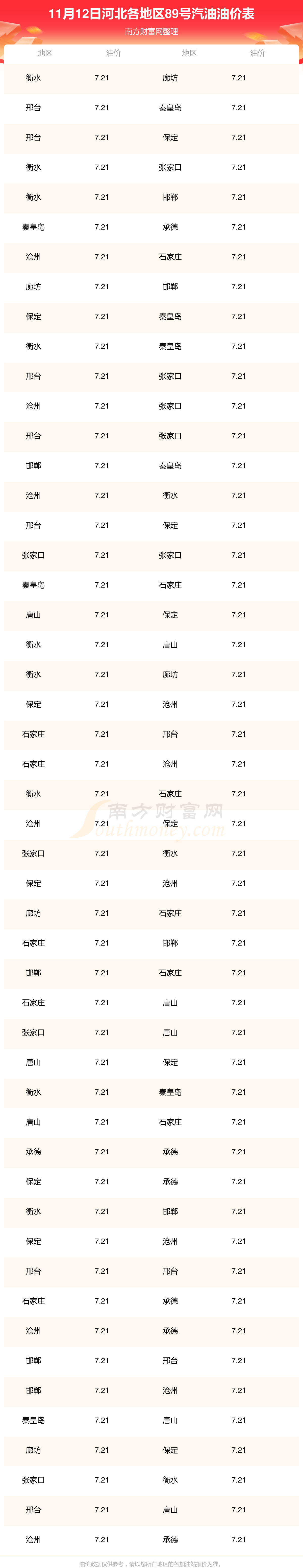 2025年11月12日河北89號(hào)汽油最新價(jià)格一覽表