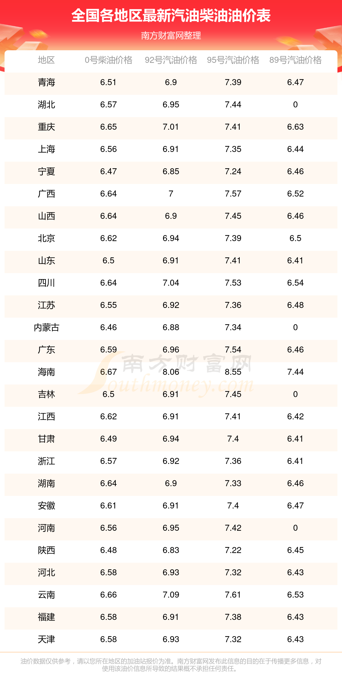 2025年11月12日全國油價調(diào)整及最新汽油價格表