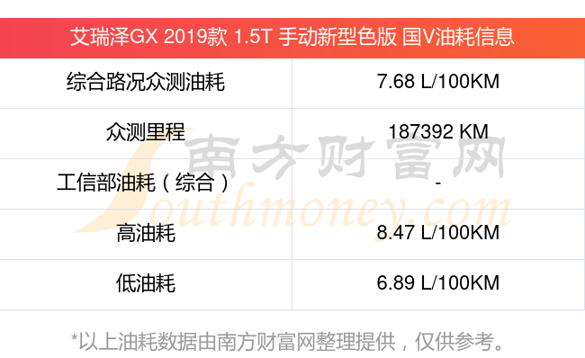 以上油耗數(shù)據(jù)由南方財(cái)富網(wǎng)整理提供,僅供參考。