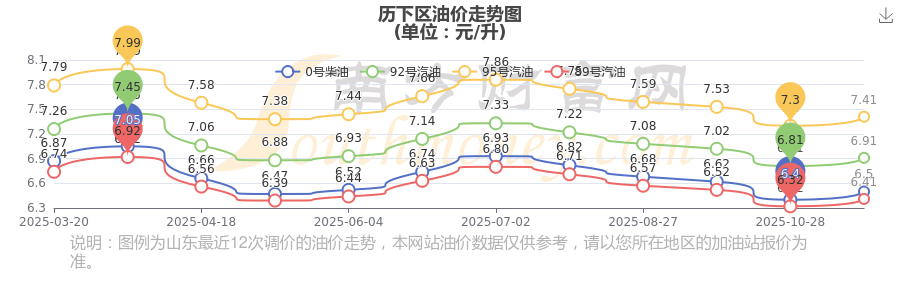 11月12日歷下區(qū)95號汽油歷史油價走勢圖