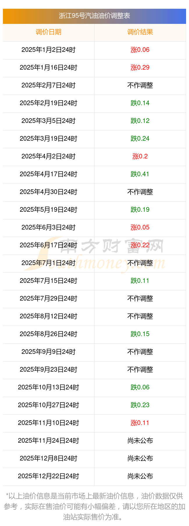 2025年杭州汽油價格調(diào)整時間及價格表