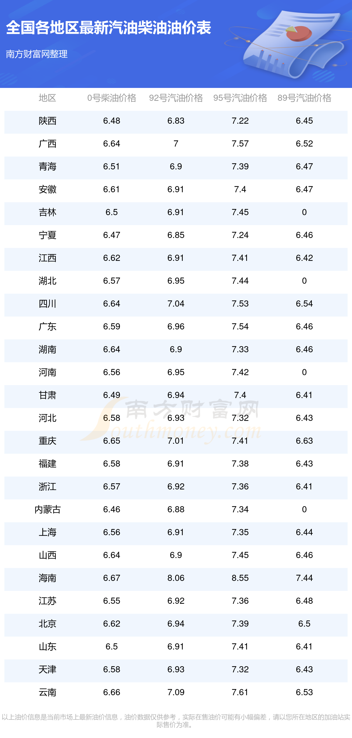 全國95號汽油平均價格為:7元每升,其中,最低為陜西,價格7.22元/升,最高為海南,價格8.55元/升。