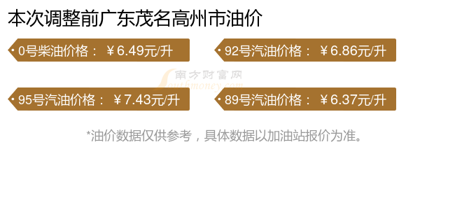 以上數(shù)據(jù)僅供參考,請(qǐng)以您所在地區(qū)的加油站實(shí)際售價(jià)為準(zhǔn)。南方財(cái)富網(wǎng)發(fā)布此信息的目的在于傳播更多信息,對(duì)使用該油價(jià)信息所導(dǎo)致的結(jié)果概不承擔(dān)責(zé)任。