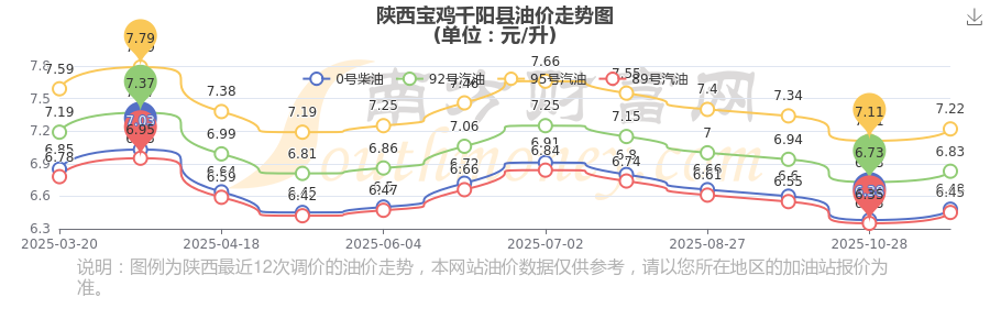 陜西寶雞千陽縣歷史油價走勢圖