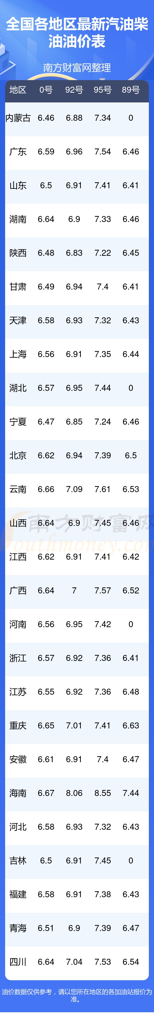 油價調(diào)整最新消息:本次油價的調(diào)整時間為11月11日,調(diào)整后全國92號汽油平均價格為7元每升,其中,最低的是陜西,6.83元每升,最高的是海南,8.06元每升。全國95號汽油平均價格為7元每升,其中,最低的是陜西,7.22元每升,最高的是海南,8.55元每升。全國0號柴油平均價格為:7元每升,其中,最低的是內(nèi)蒙古,6.46元每升,最高的是海南,6.67元每升。全國89號汽油平均價格為7元每升,其中,最低的是浙江,6.41元每升,最高的是海南,7.44元每升。下一輪汽油價格調(diào)整時間11月24日24時,距離現(xiàn)在還有12.27天。