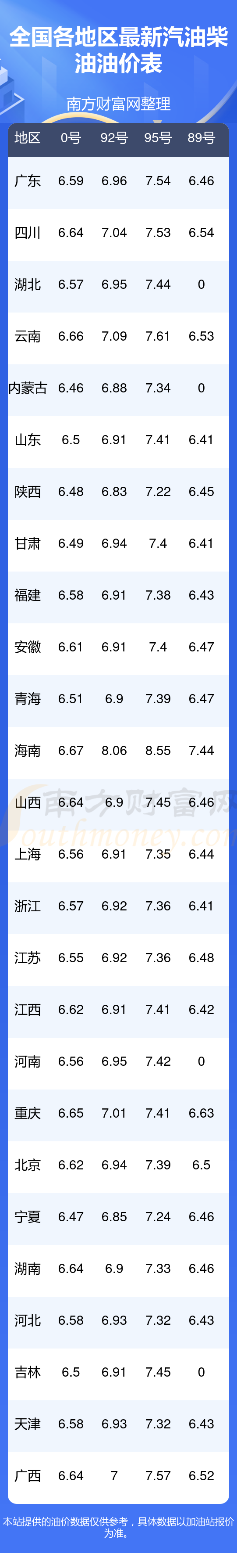 以上數(shù)據(jù)僅供參考,請以您所在地區(qū)的加油站實(shí)際售價為準(zhǔn)。南方財富網(wǎng)發(fā)布此信息的目的在于傳播更多信息,對使用該油價信息所導(dǎo)致的結(jié)果概不承擔(dān)責(zé)任。