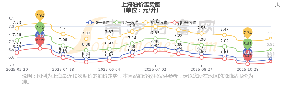 上海汽油、柴油11月12日的價(jià)格是多少錢一升?具體如下:92號(hào)汽油為6.91元,上升了0.1元;95號(hào)汽油為7.35元,上升了0.11元;89號(hào)汽油為6.44元,上升了0.09元;0號(hào)柴油為6.56元,上升了0.11元,本輪油價(jià)的調(diào)整時(shí)間為11月11日。