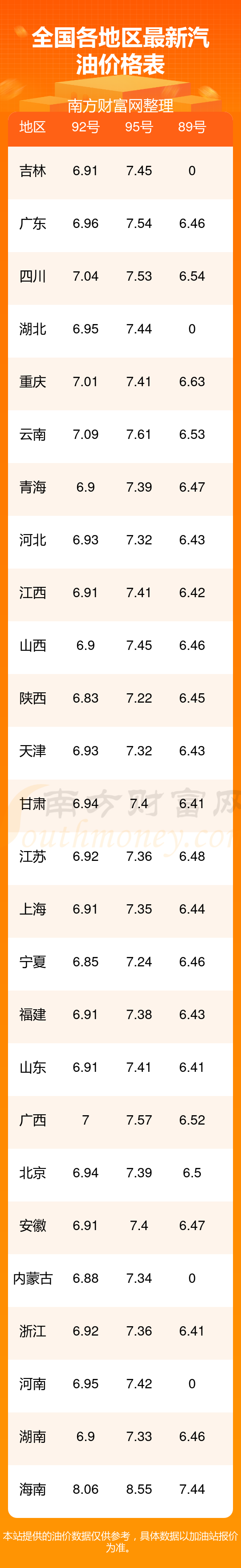 2025年11月12日全國油價(jià)調(diào)整及最新汽油價(jià)格表
