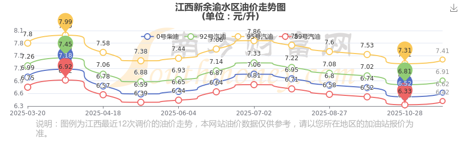 江西新余渝水區(qū)歷史油價(jià)走勢(shì)圖