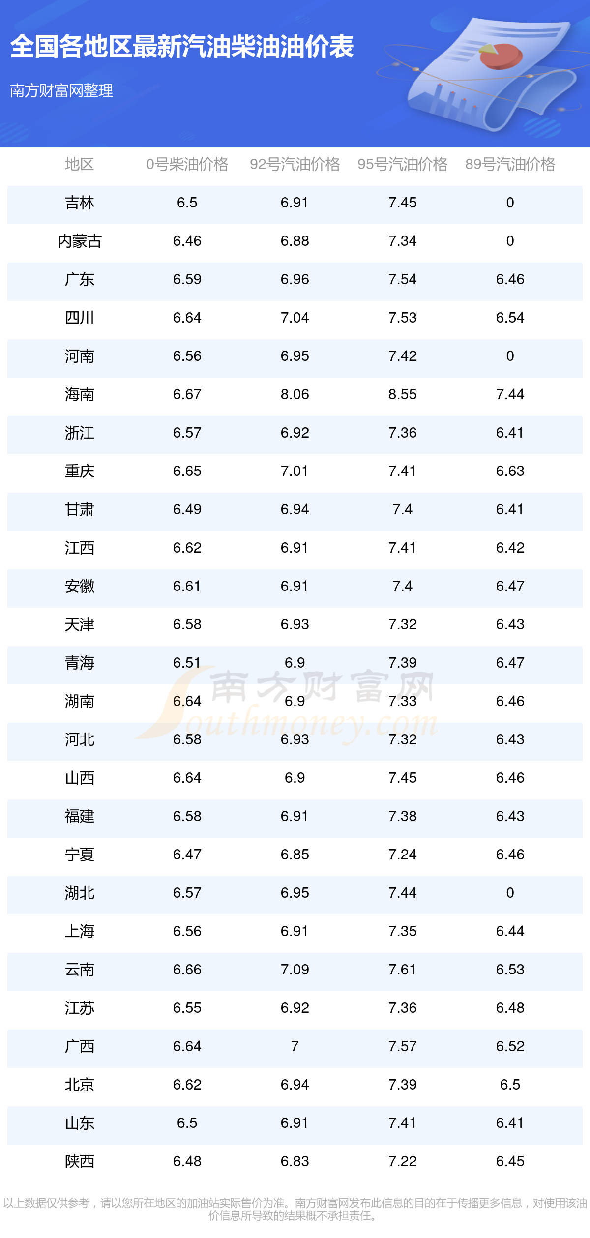 油價數(shù)據(jù)僅供參考,請以您所在地區(qū)的各加油站報價為準。