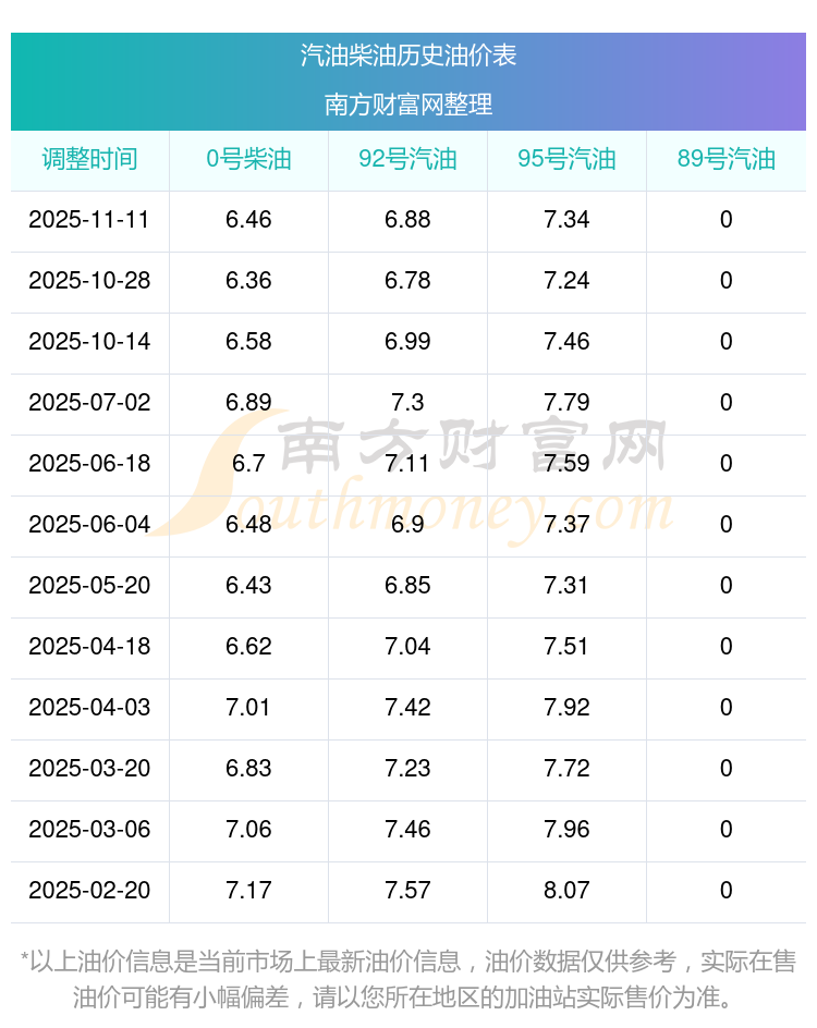 11月油價(jià)調(diào)整時(shí)間:11月10日、11月24日