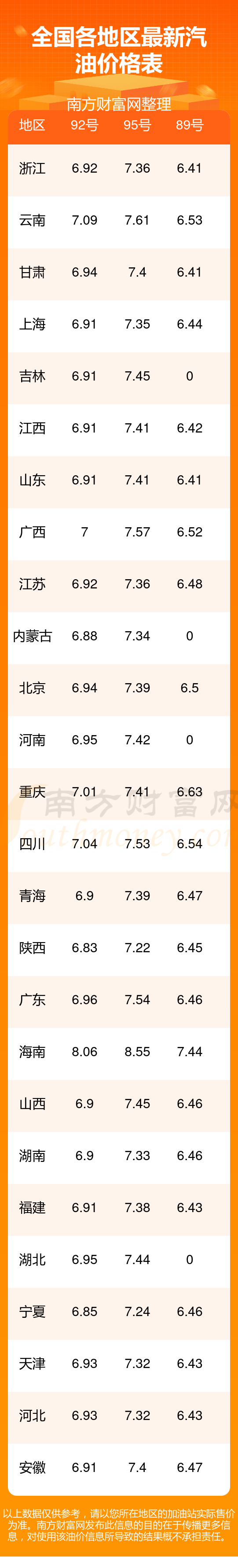 11月12日全國各地汽油今日油價多少錢