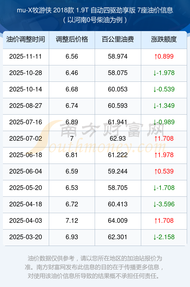 依照11月11日0號柴油最新調(diào)整價(jià)格6.56元/升來計(jì)算(以河南為例),該車型百公里的平均油費(fèi)是58.974元,依照上一輪10月28日調(diào)整價(jià)格6.46元/升來計(jì)算,百公里的平均油費(fèi)是58.075元,對比上一輪多花0.899元,下一輪的油價(jià)調(diào)整時(shí)間11月24日24時(shí)。