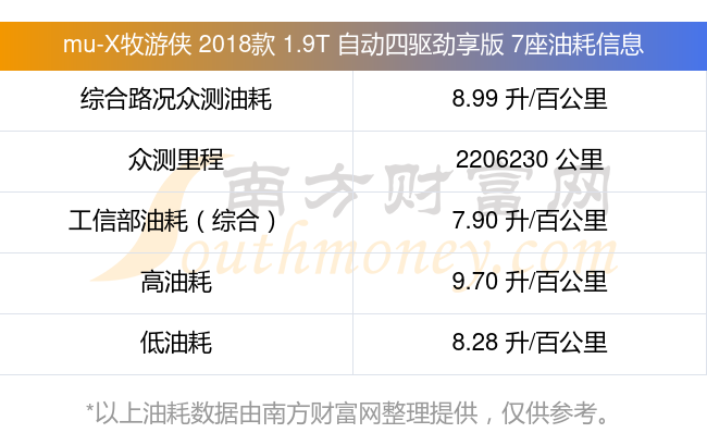 在動(dòng)力方面,mu-X牧游俠 2018款 1.9T 自動(dòng)四驅(qū)勁享版 7座搭載的是一臺1.9T163馬力L4渦輪增壓發(fā)動(dòng)機(jī),匹配6擋手自一體自動(dòng)檔變速箱,燃料形式為柴油,廠家參考價(jià)23.28萬元。
