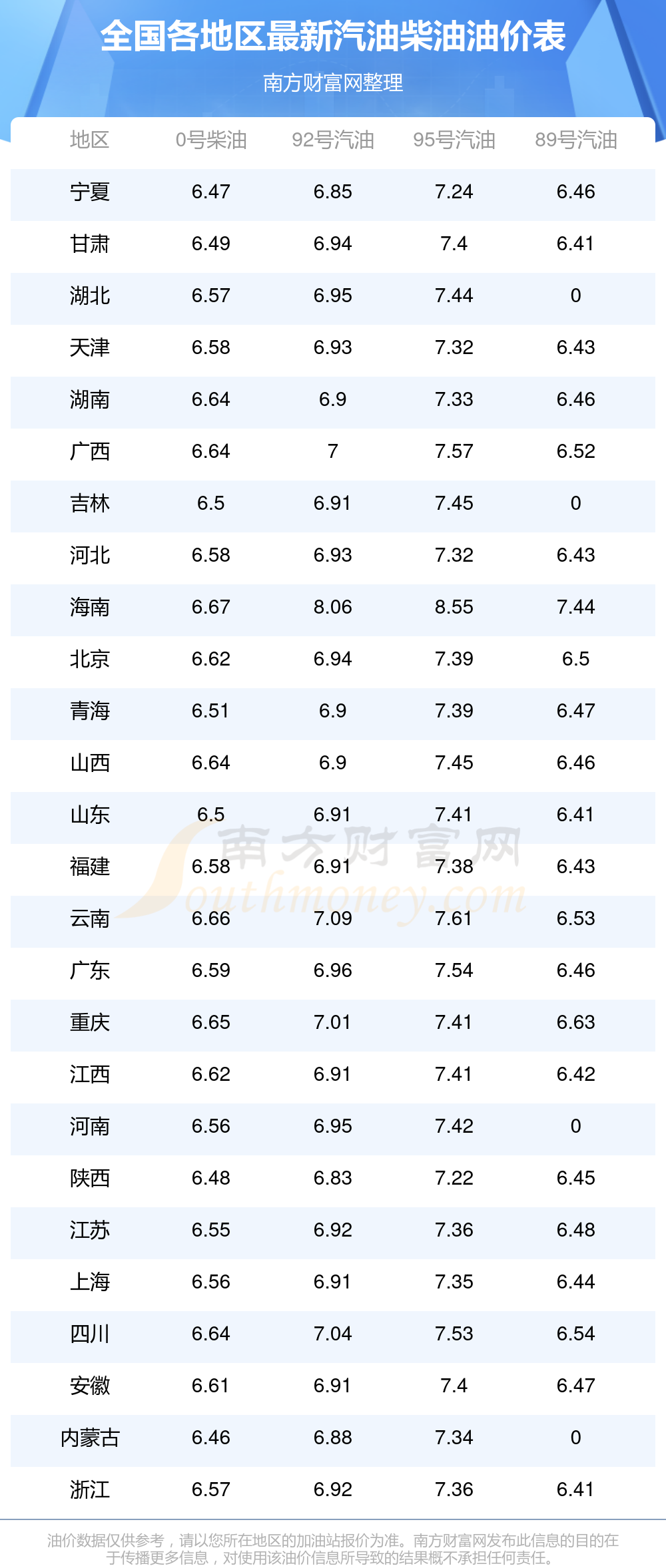 油價數(shù)據(jù)僅供參考,請以您所在地區(qū)的加油站報價為準(zhǔn)。南方財富網(wǎng)發(fā)布此信息的目的在于傳播更多信息,對使用該油價信息所導(dǎo)致的結(jié)果概不承擔(dān)任何責(zé)任。