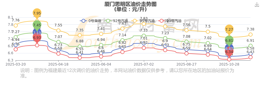 廈門(mén)思明區(qū)歷史油價(jià)走勢(shì)圖