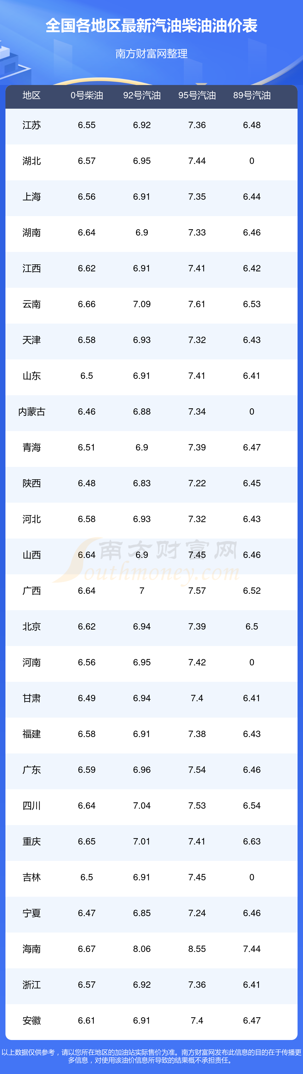 油價數(shù)據(jù)僅供參考,請以您所在地區(qū)的各加油站報價為準(zhǔn)。