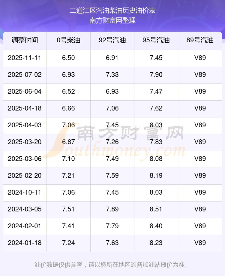 油價(jià)數(shù)據(jù)僅供參考,請(qǐng)以您所在地區(qū)的各加油站報(bào)價(jià)為準(zhǔn)。