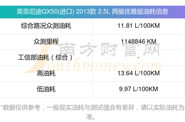 根據(jù)多位車主實(shí)測得出數(shù)據(jù),該車型低油耗為9.97L/100km,高油耗為13.64L/100km,綜合路況眾測油耗為11.81L/100km,工信部綜合油耗為-L/100km。