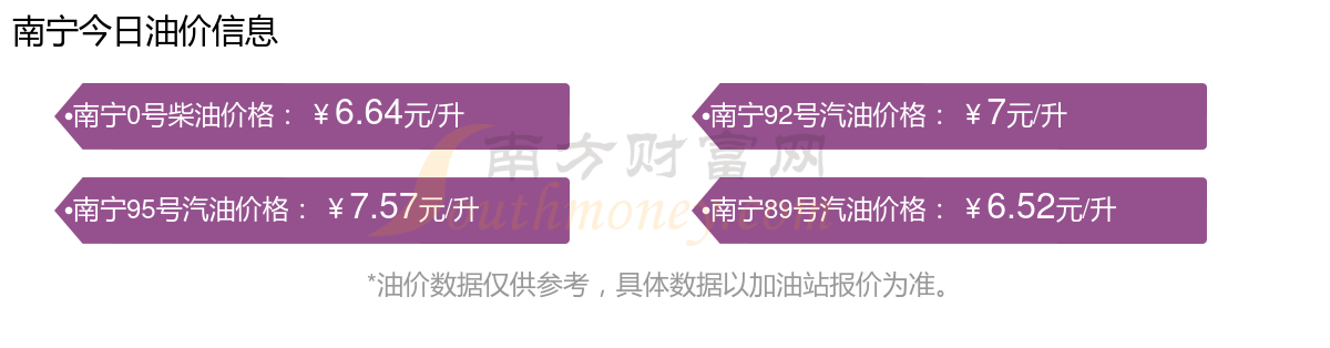 南寧汽油、柴油11月12日的價(jià)格是多少錢一升?詳情為:92號汽油為7元,上升了0.1元;95號汽油為7.57元,上升了0.11元;89號汽油為6.52元,上升了0.09元;0號柴油為6.64元,上升了0.1元,本次油價(jià)的調(diào)整時(shí)間為11月11日。