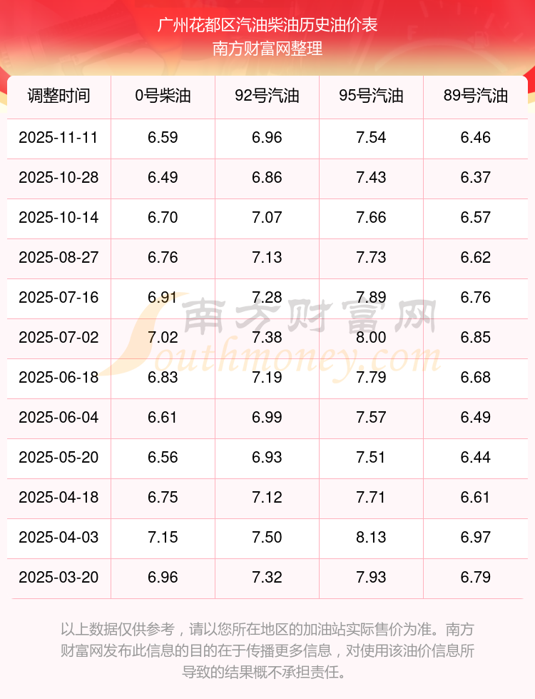 油價(jià)數(shù)據(jù)僅供參考,請(qǐng)以您所在地區(qū)的加油站報(bào)價(jià)為準(zhǔn)。南方財(cái)富網(wǎng)發(fā)布此信息的目的在于傳播更多信息,對(duì)使用該油價(jià)信息所導(dǎo)致的結(jié)果概不承擔(dān)任何責(zé)任。