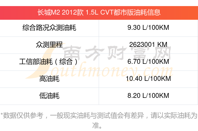 根據(jù)車主實測數(shù)據(jù),該車型低油耗為8.20升每百公里,高油耗為10.40升每百公里,綜合路況眾測油耗為9.30升每百公里,工信部綜合油耗為6.70升每百公里。