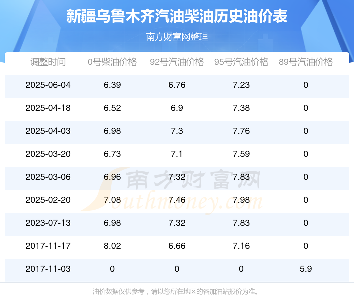 新疆烏魯木齊2025年汽油價(jià)格一覽表