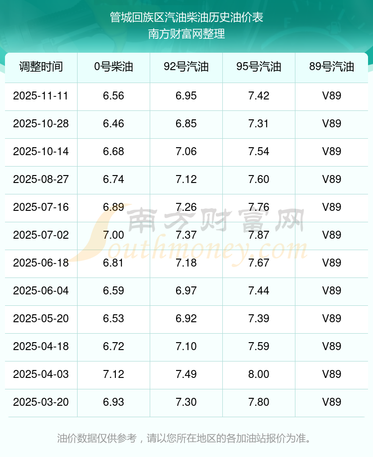 2025年管城回族區(qū)汽油價(jià)格一覽表