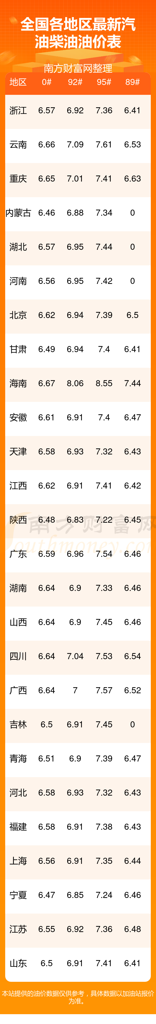 11月12日全國(guó)92、95汽油最新價(jià)格表