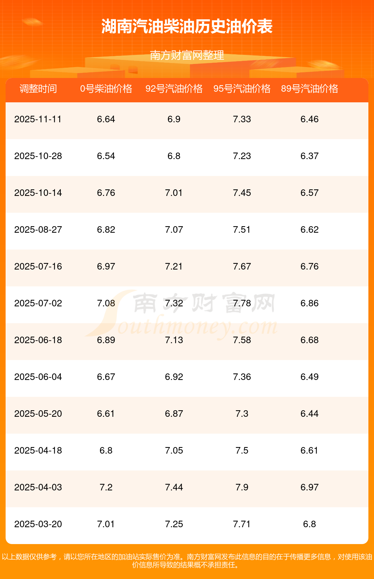 湖南89號汽油油價調(diào)整表