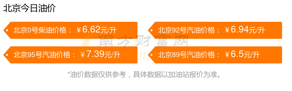 以上數(shù)據(jù)僅供參考,請(qǐng)以您所在地區(qū)的加油站實(shí)際售價(jià)為準(zhǔn)。南方財(cái)富網(wǎng)發(fā)布此信息的目的在于傳播更多信息,對(duì)使用該油價(jià)信息所導(dǎo)致的結(jié)果概不承擔(dān)責(zé)任。